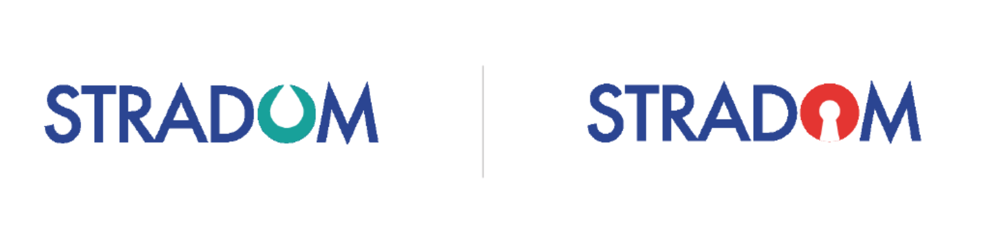 After: The rebranding strips away the excess to focus on a sleek, typographic solution. The new Stradom logo is a masterclass in minimalism, featuring a bold sans-serif font with a vibrant color scheme. The ‘O’ is cleverly designed to incorporate a keyhole symbol, subtly hinting at the security aspect of Stradom’s services, while the cleanliness aspect is communicated through the crispness of the design itself. The before and after contrast showcases a shift from a literal representation to an abstract, conceptual approach, marking Stradom’s evolution and readiness to stand out in today’s market.